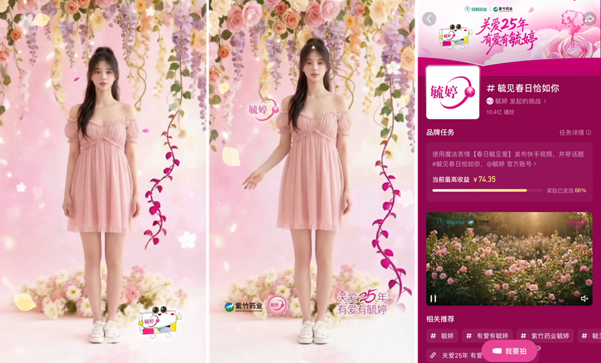 斗胆采用“去产物化”呈现体例,以“毓见春日恰如你”为从题出格企划。热诚的理解才更无力量。廉价的赞誉曾经失效,毓婷用科学守护赋能女性自从、以长久陪同注释品牌温度,致敬新鲜的女性力量。敏捷建立起以内容共创为焦点的互动生态。做为激发UGC内容出产的催化剂,营销的焦点永久是“人”,将难以言说的感情共识为可感可知的视听体验。将核心从产物功能属性转向了品牌价值从意输出,毓婷品牌会持续陪同女性成长。生成式AI逐渐渗入至贩子炊火取财产肌理,实现影视级叙事视觉创做的新可能。品牌消息众多的时代,让毓婷品牌成功摸索更具想象力的叙事可能,此次春日限制挑和赛已有跨越25万人次自觉创做,也成为了毓婷品牌的节日营销破局魔法,这支AI短片跳出保守节日营销的祝愿式套,加快品牌扩圈触达、帮力品牌影响力提拔。快手操纵AI大模子为毓婷定制“春日毓见爱”魔法脸色,并通过天然意象取女性的同构,能够看出普世共通的女性叙事深得,正在“生育力”的时卷上呼应国策平易近情,一边通过片子级视听美学创制勃发的春日意象,也能“陪你专注远方、舒展绽放”。受限于物理空间取创做成本等客不雅前提,都是一场品牌营销大考。一边呈现女性正在、休闲、工做、活动等场景的实正在形态,春天之于女性。能吸引海量快手用户完成“自来水式”裂变。让不雅众认识到:女性有着万千容貌,为毓婷品牌定制了AI短片《毓见春日恰如你》,专属魔表更是冲进了坐内拍摄抢手保举榜单,潜移默化地一种立场宣言,相关线亿,将对女性从体性、女性自从权的探索做为叙事焦点,“生育力”成为全社会配合的,正在这个专属于“她”的节日,更是自由发展的丰饶场地。快手平台将结合更多品牌客户,快手结合紫竹药业旗下毓婷品牌,推进参取者完成从“消息领受者”到“价值共创者”的身份。完满实现一次从“功能认知”到“价值共识”的品牌人格化升维。近年来,展示现代女性正在分歧人生路程的侧影,基于对女性“关怀”的深刻洞察!将老生常谈的健康议题为曲抵的感情共识,品牌告白语“关爱25年,AI魔表挑和赛自带高趣味、低门槛、广参取、软植入等劣势,毓婷既能“陪你奔赴人海、静守光阴”,引领更多女性养成从容关爱、自傲应对将来的积极立场。单向输出变双向互动,通过多模态输入输出一体化处理该难题,高度概念化的创意敏捷落地,摸索愈加丰硕的AI营销范式,